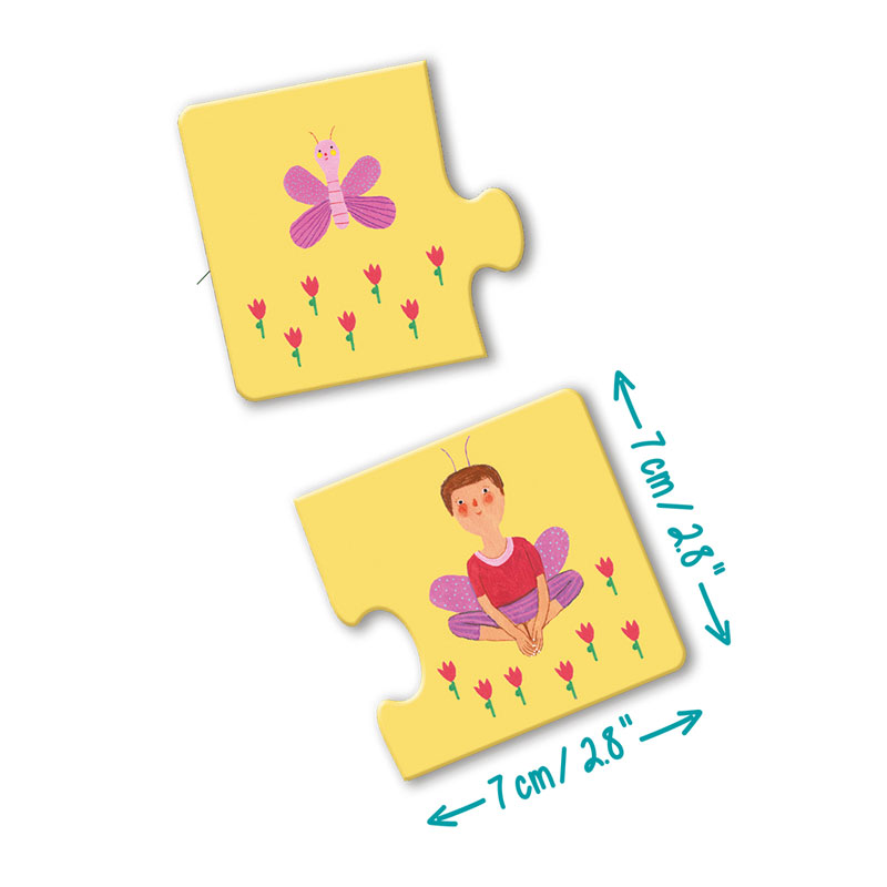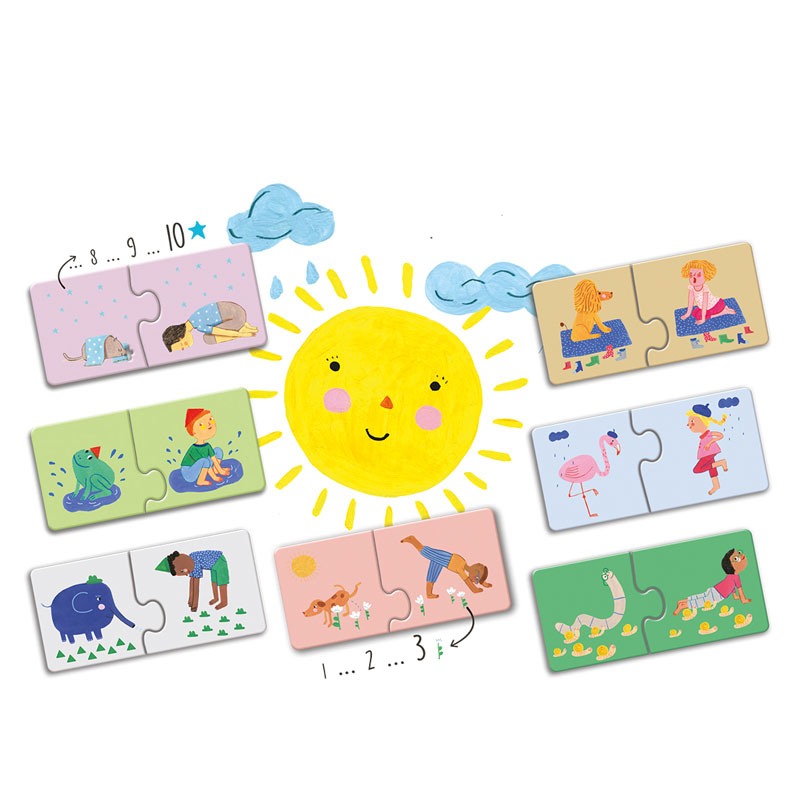 Con el Yoga Puzzle Pairs los niños aprenderán a contar, los animales y los colores. Además, ¡pueden hacer ejercicio físico imitando las figuras de yoga de los puzles.